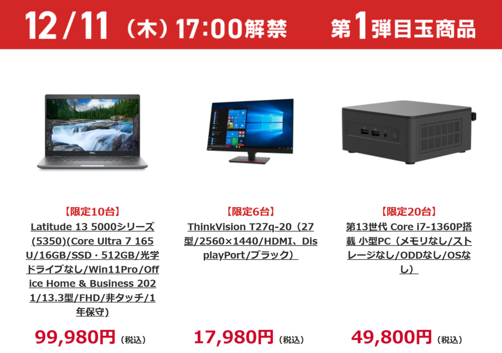 | 第1弾 | 本日 12/11(木) 17:00~ | 目玉商品放出① |
