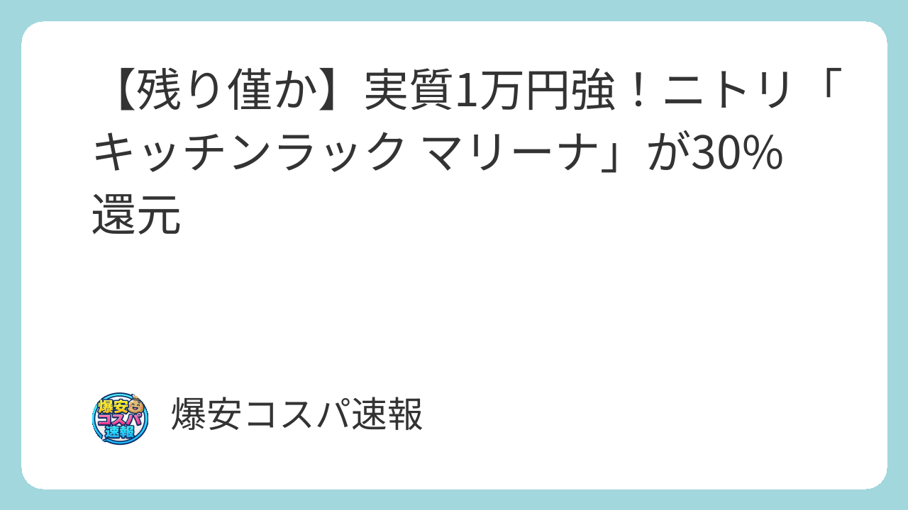 Amazonのニトリ高還元セールにて、キッチン収納家具も対象になっています。 在庫が少なくなっているようなので、収納棚をお探しの方は早めの確保をおすすめします。