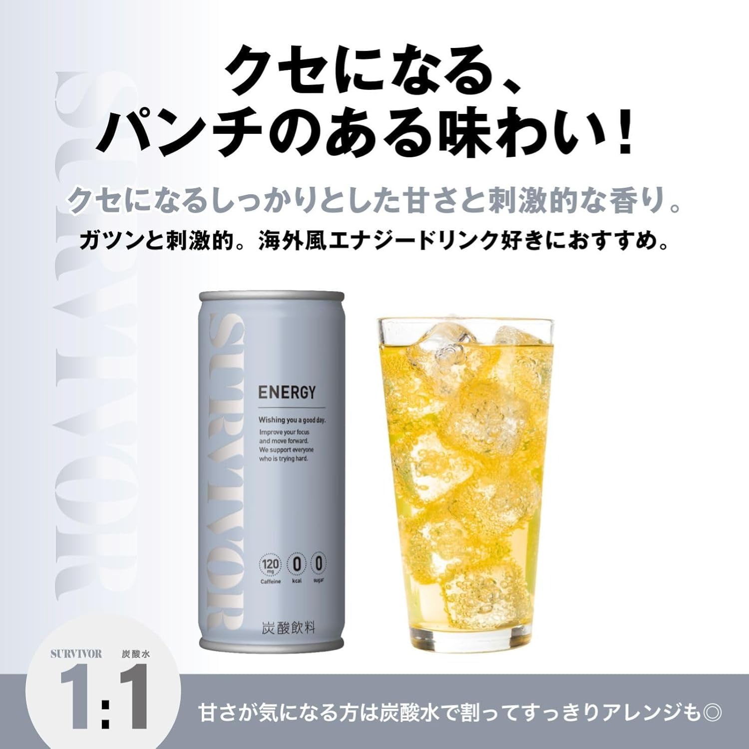Amazon.co.jp: SURVIVOR(サバイバー) サバイバー エナジードリンク ゼロ 250ml 30本 ゼロカロリー ゼロシュガー カフェイン 120mg 炭酸飲料 箱...